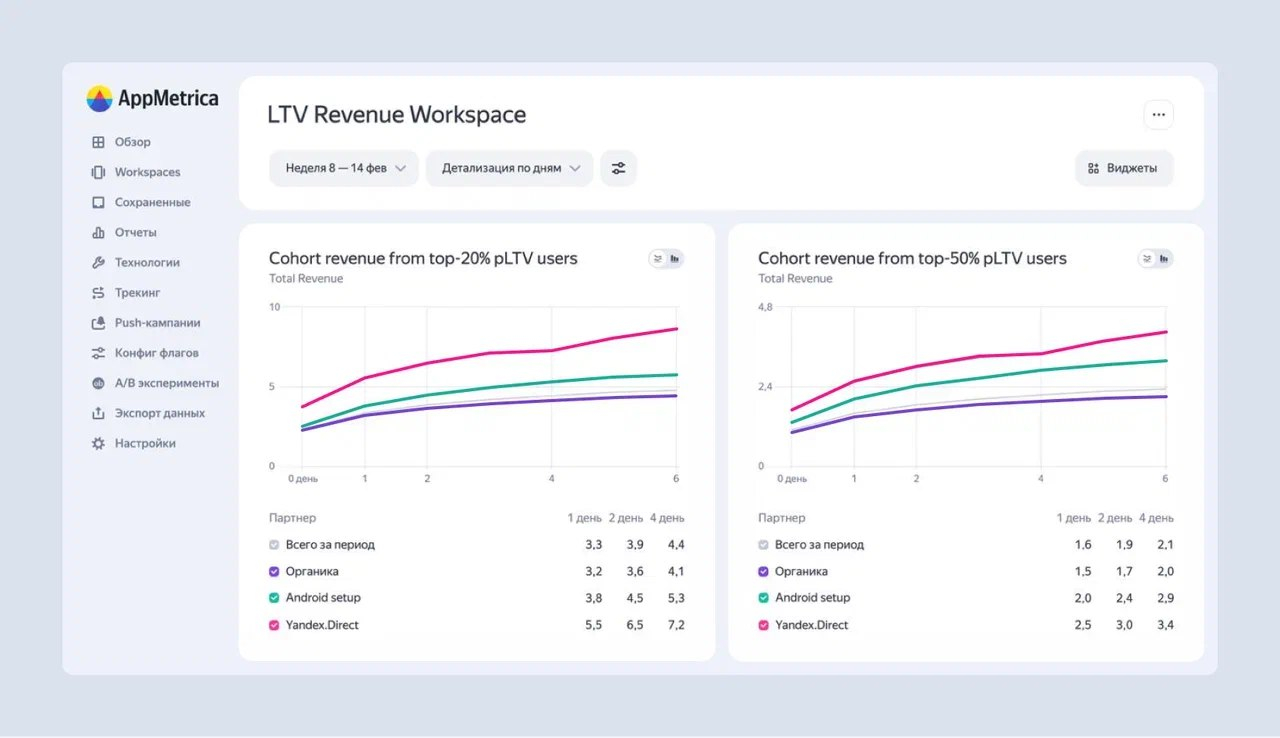 В сервисе «Яндекса» для аналитики мобильных приложений AppMetrica появился новый инструмент — предикты LTV (lifetime value) и оттока. С их помощью можно оптимизировать кампании на пользователей с высоким LTV, находить рекламные каналы с высокой рентабельностью, вовремя начинать работу по удержанию пользователей. Об этом Sostav рассказали в пресс-службе компании.