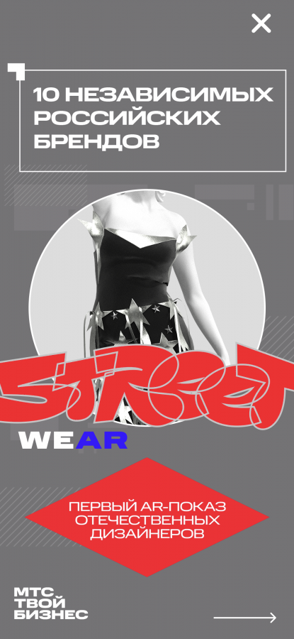 МТС проведёт показ мод российских дизайнеров в дополненной реальности (AR). Автором идеи выступило креативное агентство BBDO Russia. AR-показ коллекций «Street WeAR» пройдёт в рамках программы поддержки малого бизнеса. Об этом Sostav сообщили в пресс-службе компании.