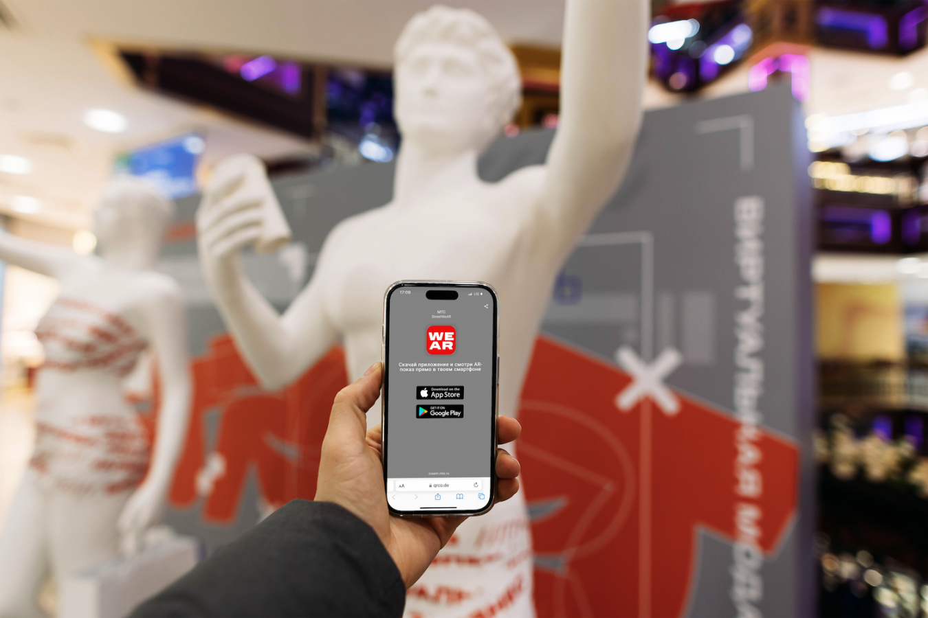 В «Европейском» скульптуры установлены внутри здания — в атриуме «Рим», в Санкт-Петербурге манекены-скульптуры расположены над главным входом в ТРЦ «Галерея». В приложении также можно поделиться фотографией понравившегося образа в соцсетях или оформить онлайн-заказ.