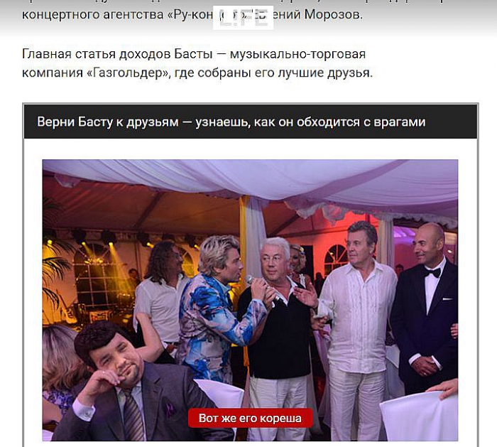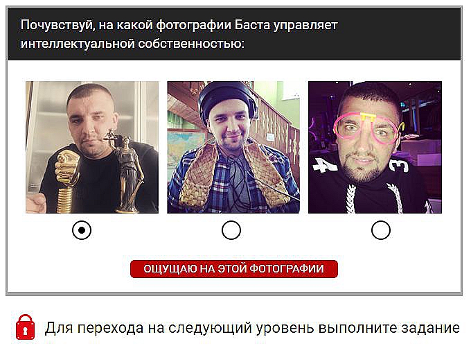 Геймволл можно встретить в материале о Василии Вакуленко (рэпере Баста). После прочтения фрагмента пользователь должен выполнить задание. Первое — собрать из деталей изображения бизнес-империю Басты, чтобы перейти на следующий уровень. Далее необходимо вернуть музыканта к друзьям, вложить ему в руку записку «Спасибо бабушке», угадать, как выглядит номер в отеле рэпера, устроить «кинопробы на нормальные роли», указать, на какой фотографии Баста управляет интеллектуальной собственностью, а также расположить фотографии в правильном порядке. Всего квест включает семь заданий. Прохождение открывает доступ к следующей части текста.