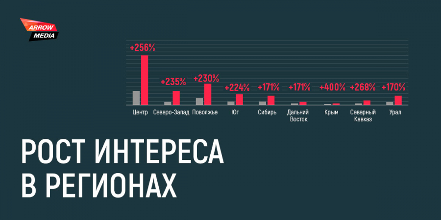 Поэтому при планировании интернет-продвижения оценивайте популярность и по России. Запускайте в формате A/B-теста рекламные кампании с разбивкой по регионам и отслеживайте наиболее эффективные.