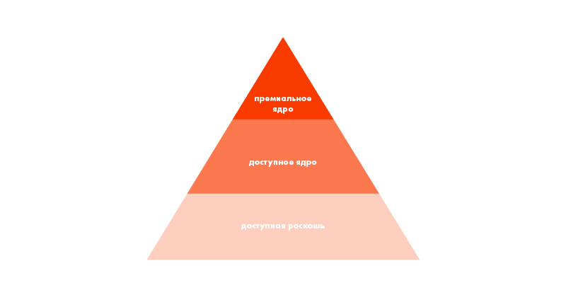И верхний уровень пирамиды — это премиальное ядро (premium core). Hermes, Cartier и Rolex — бренды, которые middle-class приобретает один или два раза в течение своей жизни, а то и совсем не покупает.