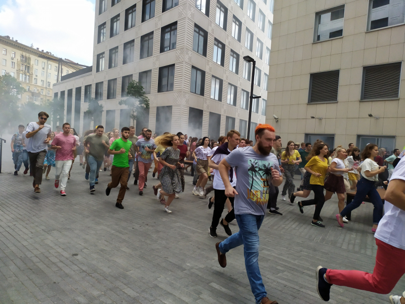Специально для съемок ролика на площади между домами высадили деревья и привезли два с лишним центнера отборных зеленых яблок. Актеры бросали их несколько часов, а операторы бережно укрывали технику от брызг. Как снимали «батальные сцены», каскадерские трюки и обливания соком, можно увидеть в фильме о ролике.