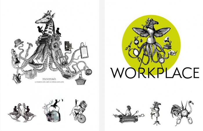 История началась в 2013 году, когда Студия взялась за разработку шрифтовой и графической части логотипа рабочих пространств. В январе 2014 года публика познакомилась с логотипом Workplace - итогом пяти месяцев работы креаторов стал графический знак, крайне схожий с айдентикой нью-йоркского кафе Moomah, разработанной в 2009 году и широко известной в среде профессионалов.
