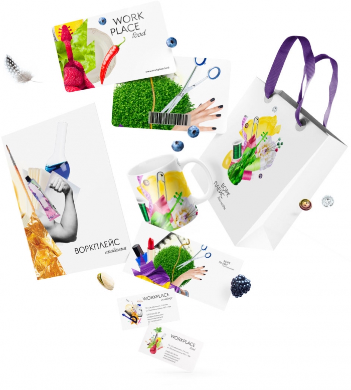 В качестве компенсации Студия Лебедева разработала фирменный стиль для каждого направления деятельности Workplace. В каждом коллаже креаторы студии попытались сочетать музыку и всевозможные инструменты специалистов, для того чтобы рассказать о разнообразии способностей, навыков и умений мастеров, работающих в «Воркплейсе».
