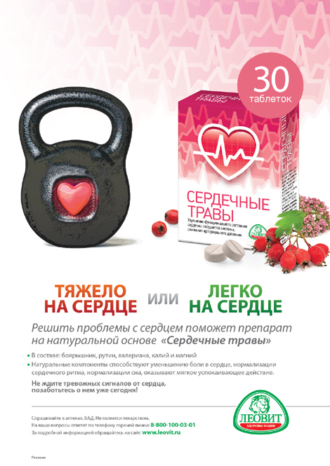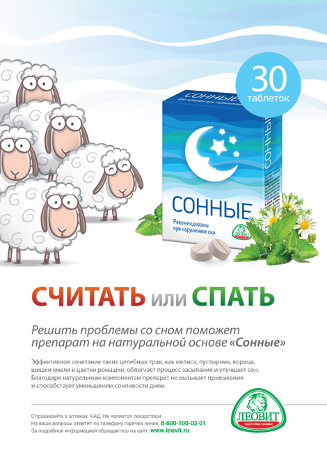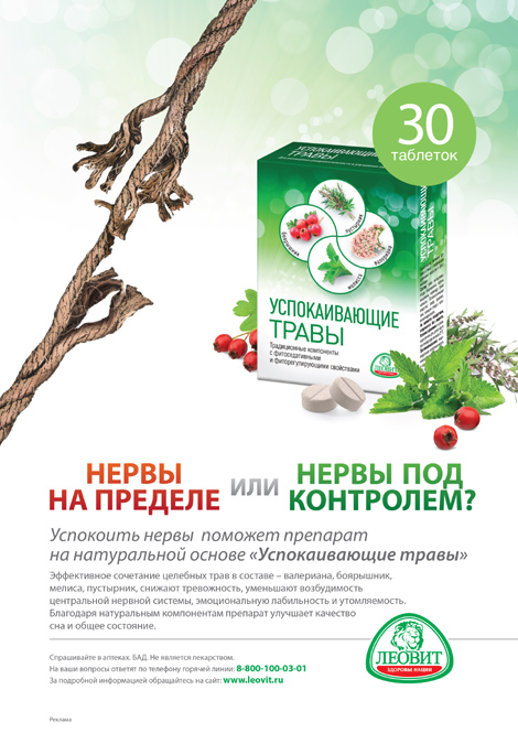 Креаторы разработали промо для трех пераратов: «Сердечные травы», «Успокаивающие» и «Сонные». За основу концепции были взяты не традиционные для лекарственных средств образы заболевшего и выздоровевшего человека, а стереотипы, связанные с такими явлениями, как бессонница и стресс.
