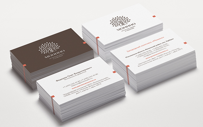 Графическое решение представляет собой инициал имени бренда - литеру «М», выполненную в изящной каллиграфической манере и вписанную в качестве «ствола» в стилизованную крону. По словам креаторов, помимо ключевых ценностных ассоциаций, работают и ассоциации с уютом загородной жизни, расположением в лесу, обширной собственной территорией — важными фукнкциональными преимуществами. Достаточно живое и благородное сочетание основных фирменных цветов создает ощущение респектабельности и комфорта, уверены креаторы.