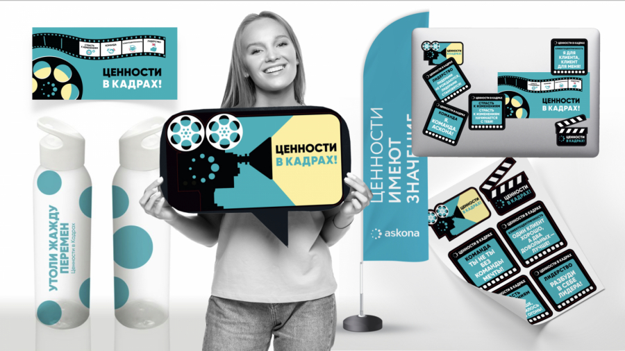 В качестве решения задачи Braining Group обратились к формату онлайн-сериала с символичным названием «Ценности в кадрах». Оно помогло обыграть сразу два смысла: ориентиры компании и важность каждого сотрудника. При этом работники Askona принимали участие в съёмках.