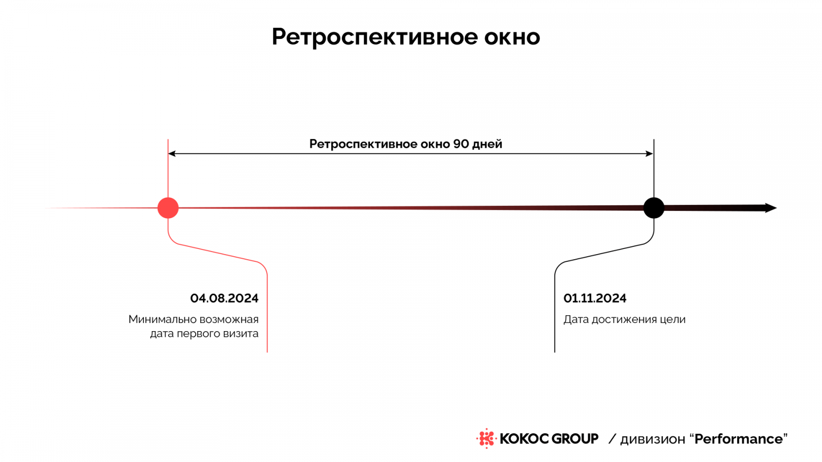 Для пользователя, совершившего конверсионное действие 01.11.2024, будем собирать цепочку визитов за 90 дней, т. е. первая дата, когда пользователь мог посетить сайт в рамках ретроспективного окна, — 04.08.2024.
