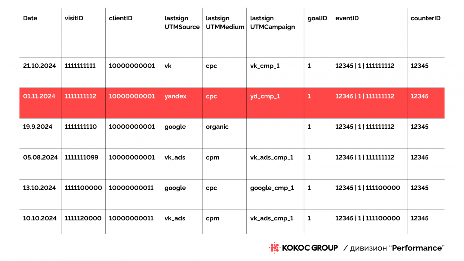 - eventID: суррогатный идентификатор совершившегося события — достижения какой-либо цели;