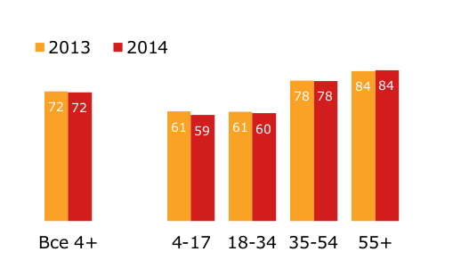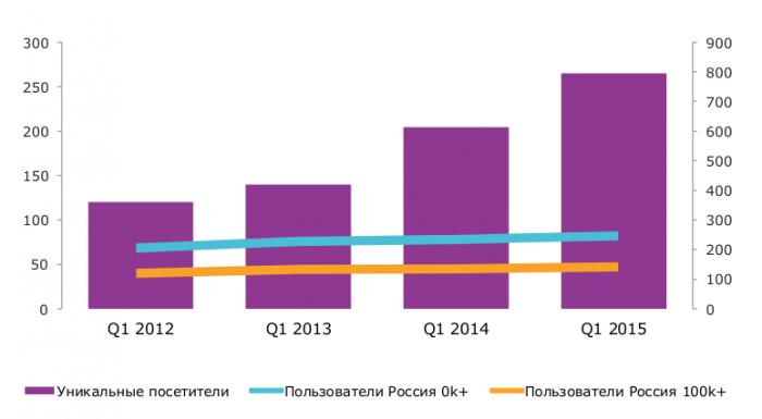 Источник: TNS Web Index УИ, ФОМ, Россия 0+, Q1 2012-2015