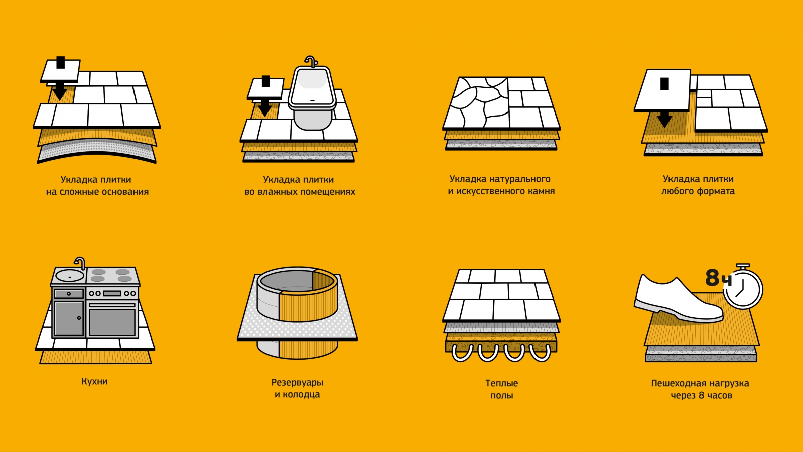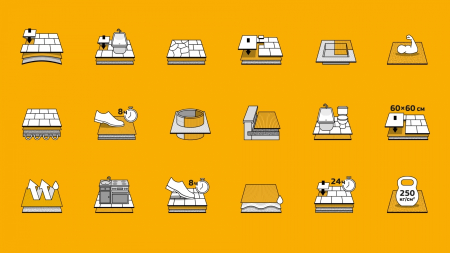 За счет контраста и работы с типографикой достигается образ строгого и профессионального продукта, что зачастую формирует конечный выбор при покупке. Расположение самих элементов дизайна зависело напрямую от расположения товара на витрине. Зачастую строительные смеси лежат, а не стоят, поэтому для нас важно было создать такой дизайн, который будет отлично считываться из любого положения и ориентации на прилавке.