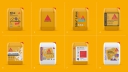 В этой концепции команда агентства решила отойти от привычных композиций и сделать яркий акцент в виде наложения букв, исходя из наименования товаров (СС — сухая смесь, ДБ — добавка в бетон, и так далее), подчеркивая наименование товаров не только цветовыми маркерами, но и аббревиатурой.