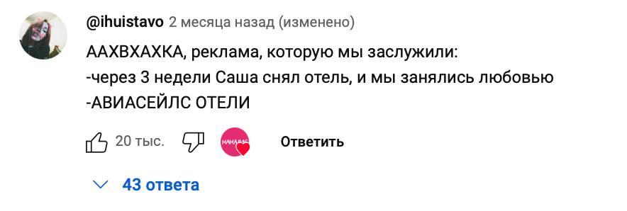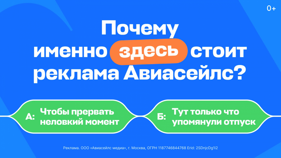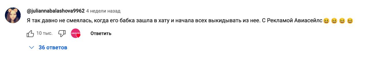 Коллаборация с «Авиасейлс» — это пример эффективного размещения нативной интеграции в видеоконтенте, где дерзкие, фановые креативы бренда органично стали частью привычной зрителям истории. Этот кейс привлёк внимание и вызвал интерес как у интернет-аудитории телеканала «Ю», так и у многих популярных пабликов. Такой подход позитивно влияет на метрики восприятия бренда, а рекламную интеграцию хочется пересматривать снова и снова.