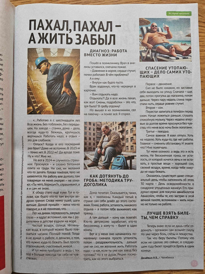 Сервис по покупке авиабилетов «Авиасейлс» ко Дню осведомленности о синдроме упущенных каникул, который отмечается в России 30 марта, напомнил о важности отдыха. Компания заняла обложки трех тематических изданий («Твое здоровье», «Сам себе лекарь» и «Я выбираю ЗОЖ») и разместила истории от друзей бренда о том, что отдых нужен всем. Об этом Sostav рассказали в пресс-службе «Авиасейлс».