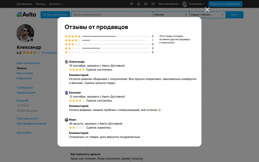 Тогда на странице заказа появится специальная форма, где можно написать отзыв и оценить сделку. Отзыв на покупателя можно будет оставить в течение 14 дней после появления формы. Отзывы покупателя и продавца будут опубликованы одновременно после проверки, либо по истечении двухнедельного срока.