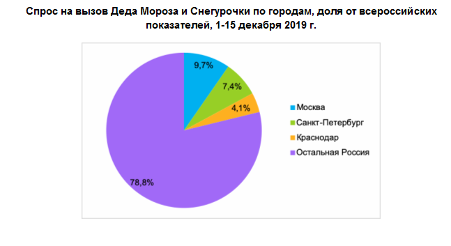 В начале декабря 2019 года россияне чаще интересовались возможностью пригласить Деда Мороза и Снегурочку. Анализ поисковых запросов показал, что «Дед Мороз» стал у россиян на 4,3% популярнее по сравнению с аналогичным периодом 2018 года, а «Дед Мороз и Снегурочка» — на 26,7%.