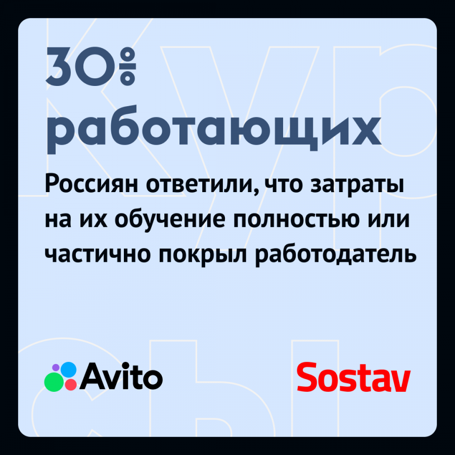 Половина работающих россиян продолжают вкладываться в своё обучение и покупают курсы на образовательных платформах с лицензиями. Наиболее популярными среди опрошенных направлениями дополнительного образования стали IT и программирование (об этом заявили 16% респондентов), финансы и инвестиции (15%), психология и педагогика (15%). Таковы данные исследования сервисов «Авито Реклама» и «Авито Работа», которое есть в распоряжении Sostav.