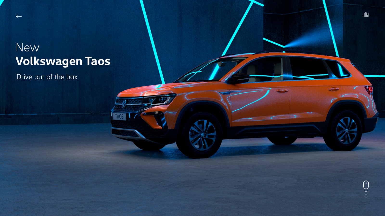 Мы, в Outside Digital, уже не первый год разрабатываем 3D-шоурумы для своих клиентов. Например, 3D-шоурум Volkswagen Taos, который дает возможность рассмотреть автомобиль со всех сторон, экстерьер и интерьер. Пользователь может совершать различные действия: открыть багажник или двери, включить фары, поменять цвет кузова или диски.