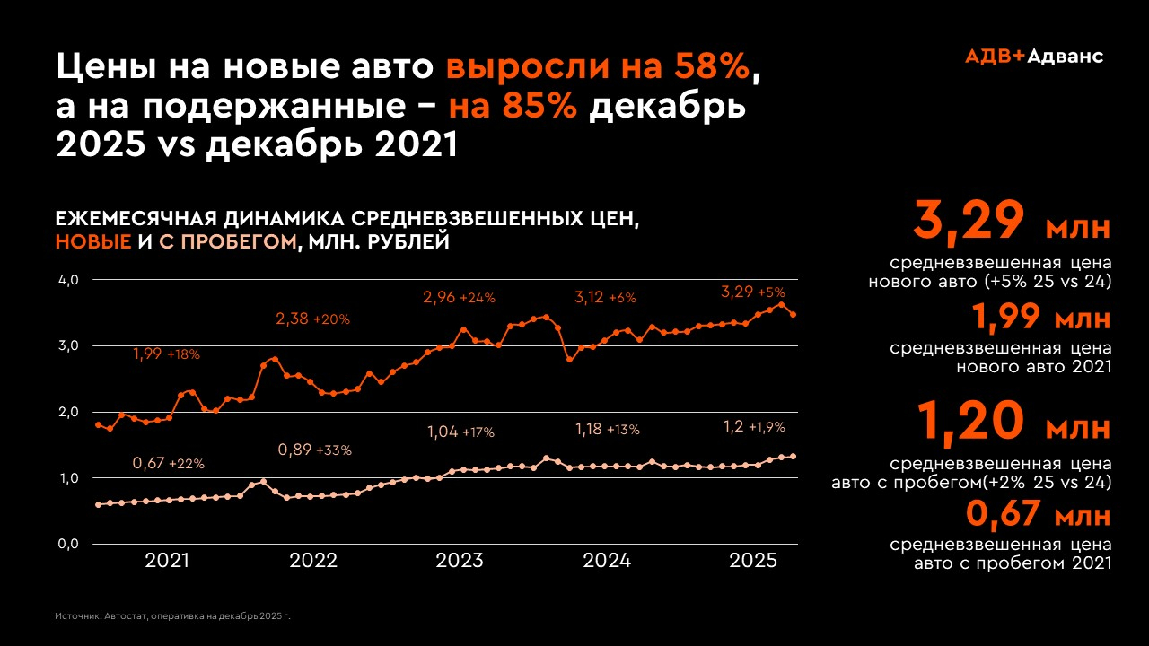По итогам 2025 года в России продано 1,49 млн новых автомобилей — рынок не падает, но и не растет. При этом с конца 2021 года машина подорожала в полтора раза, а кредиты выдаются под 24−27 процентов годовых. Интерес аудитории сохраняется, но привычные модели поведения перестают работать: китайские марки занимают уже около половины рынка, а лояльность к ним за восемь лет выросла в 5,3 раза. Как меняется структура спроса и какие стратегии выходят на первый план, команда «Адванс» (группа