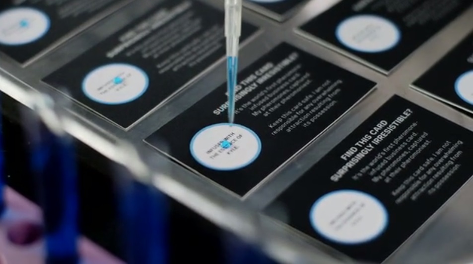 Каждый сотрудник вместе с потом отдал свои феромоны химикам, они выделили необходимо вещество и нанесли на визитные карточки.