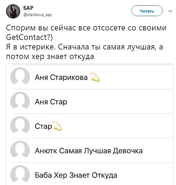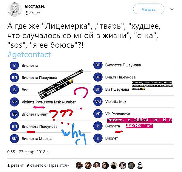 Пользователи быстро обнаружили, что с помощью GetContact можно получить список имен, под которыми он сам или другой человек записаны в чужих телефонных книжках. Иногда «высвечивались» домашний или рабочий адрес, наличие машины, детей и номер банковской карты — если такие данные указывали другие пользователи.