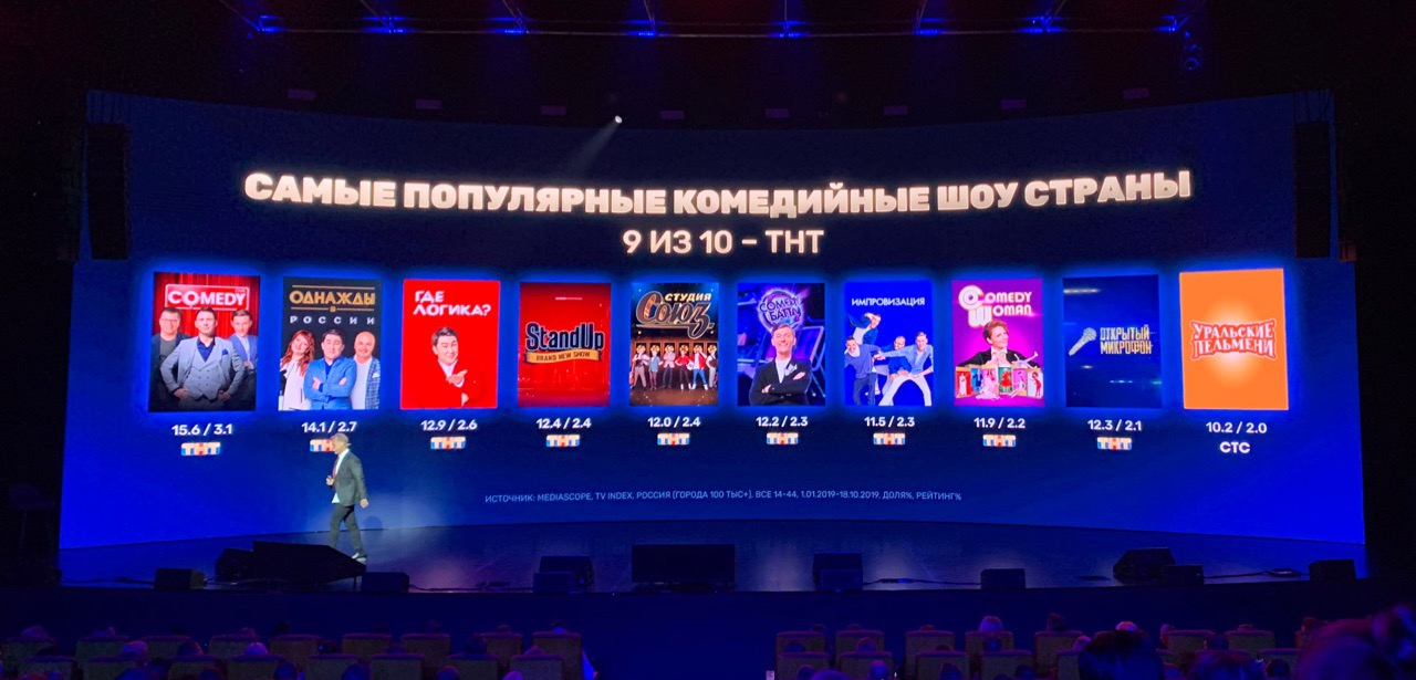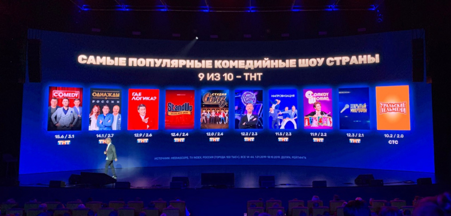 9 из 10 самых популярных развлекательных шоу России и 7 из 10 комедийных сериалов — это проекты ТНТ.
