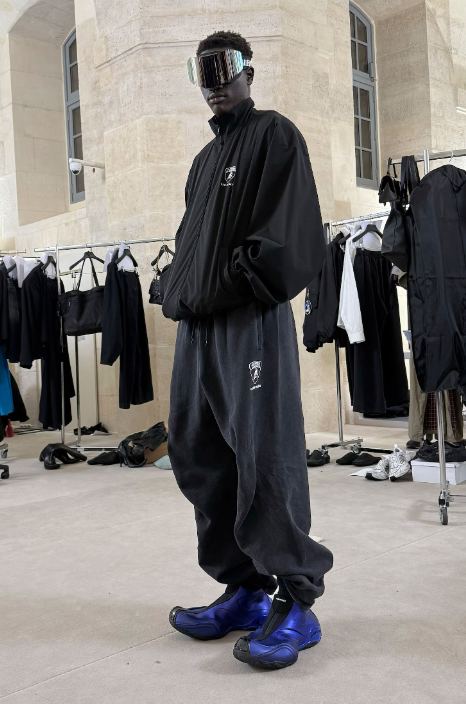 Коллекция представляет собой смесь минимализма и динамики, которые стали визитной карточкой Balenciaga, и духа скорости и силы Lamborghini, в нее вошли вполне повседневные вещи — оверсайз пуховики, бомберы, широкие штаны, длинные свитеры, спортивные костюмы.