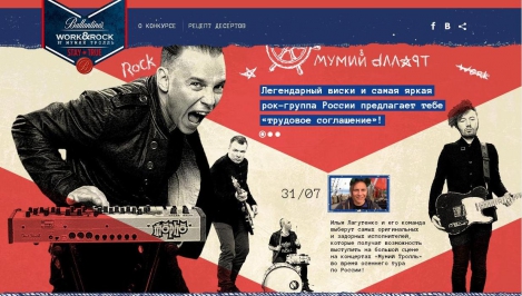 Бренд виски Ballantines объявил о начале всероссийского конкурса «Work & Rock by Мумий Тролль», победитель которого выступит на одной сцене с популярной группой и ее лидером Ильей Лагутенко. Как и в прошлом году, проект ведет агентство Promo Interactive.