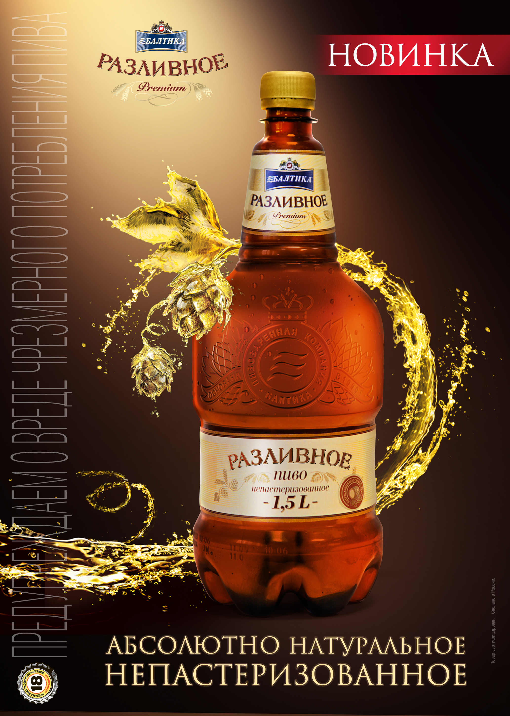 Как известно, пиво «Балтика. Разливное» с 2010 года выпускалось либо в привычной бутылке 0,44 л или в банке объемом 0,75 л. С середины этого месяца в продажу поступят новые полуторалитроввые бутылки с рельефным эмбоссментом, отражающие премиальный характер бренда.