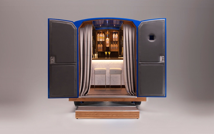 Французский водочный бренд Grey Goose представил необычный маркетинговый проект: самый интимный и роскошный бар не колесах. Бар стилизован под ретро-фургон Citroen, оформленный как передвижная французская булочная. При этом внутри он представляет собой настоящее лакшери-заведение всего на два посетителя, где гостям подают напитки.