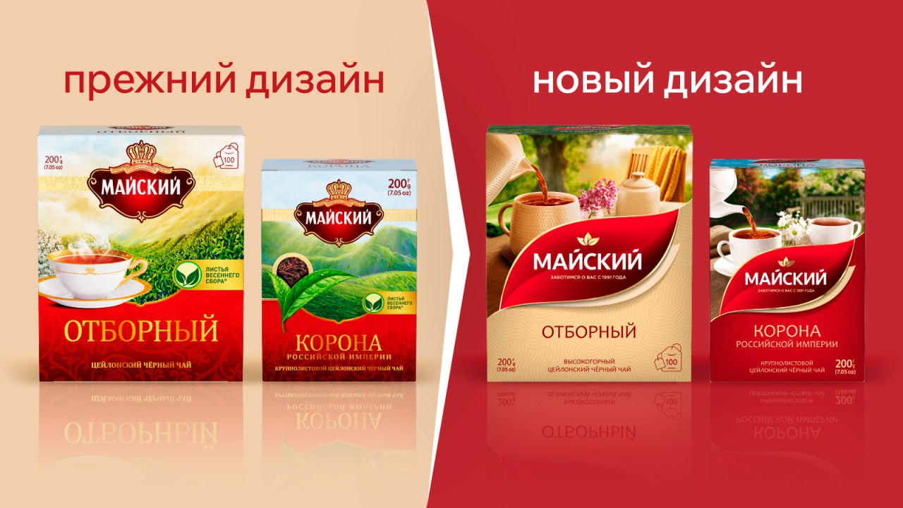 Бренд чая «Майский», принадлежащий компании МАЙ, представляет новую упаковку, с которой обновится весь ассортимент до конца 2024 года. Это первый ребрендинг за последние 10 лет. Новый дизайн станет ярче, современнее и заметнее, сохраняя при этом преемственность с прошлым. Основная задача заключалась в том, чтобы привлечь новую аудиторию в возрасте 35−45 лет, не теряя лояльности потребителей старше.