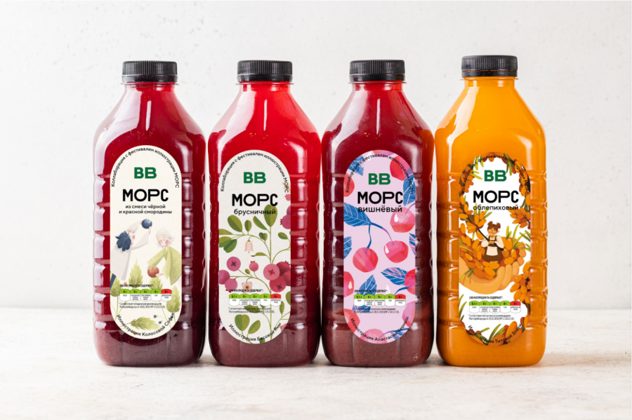 В рамках десятого юбилейного фестиваля МОРС прошел конкурс иллюстраций для упаковок напитков. «ВкусВилл» предложил участникам разработать дизайн для морсов с разными вкусами. В итоге были выбраны четыре победителя, чьи работы уже украшают упаковки.