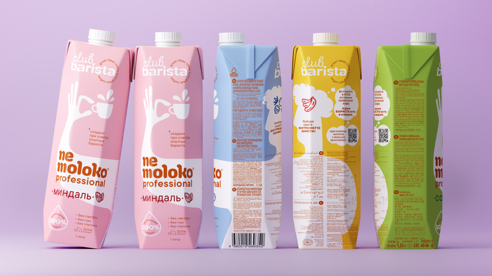 DDVB обновило дизайн упаковки Nemoloko Club Barista, линейки альтернативных молочных продуктов, которая выпускается под брендом Nemoloko Professional. Производитель, компания «Сады Придонья», принял решение усовершенствовать рецептуру продукта. Обновленные напитки должны были попасть на полки магазинов уже в новом дизайне, который был бы узнаваем, но демонстрировал изменения. Для предыдущей линейки Nemokolo агентством DDVB уже был разработан бренд-персонаж — Бариста. В новом дизайне его было решено сохранить, но пересмотреть концепцию и добавить экспертности, представить обновленную линейку как профессиональную, немного дистанцировавшись от домашнего использования.