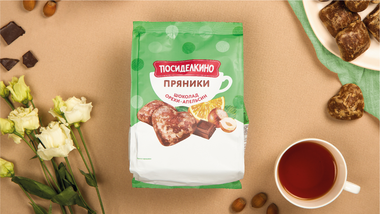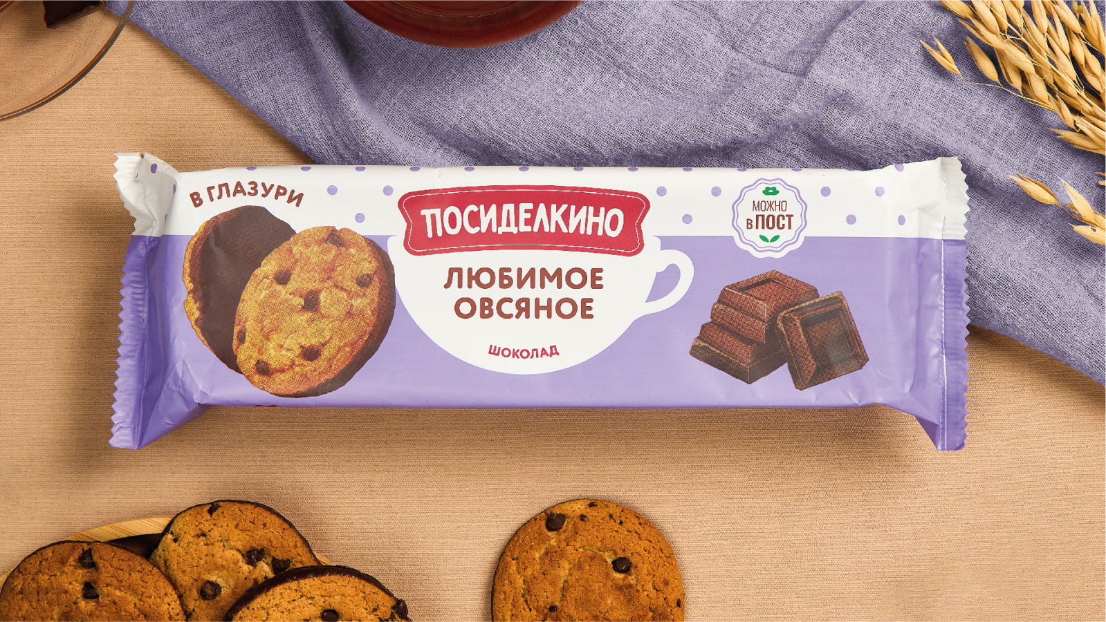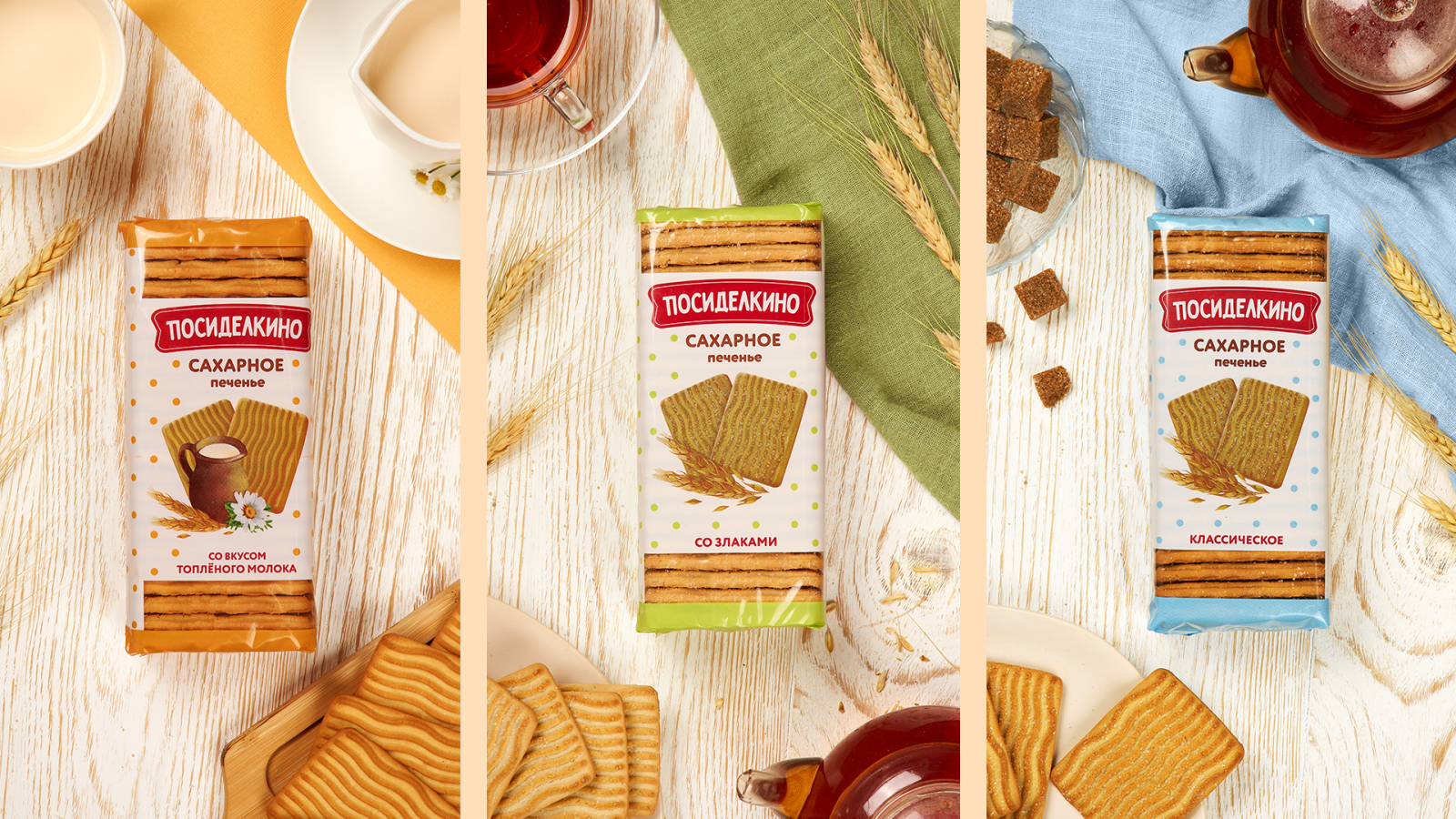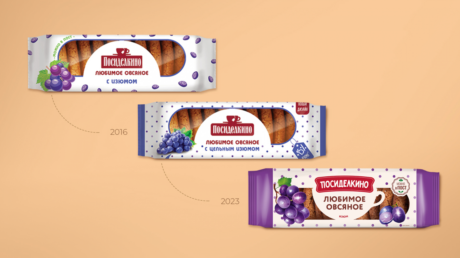 Кондитерский бренд «Посиделкино», известный своими овсяными печеньями более 20 лет, провел рестайлинг в честь юбилея компании «Любимый край». Агентство DS1 branding, ранее работавшее с брендом, вновь взялось за задачу осовременить имидж продукции и привлечь молодую аудиторию, сохранив при этом преемственность и ценности «Посиделкино».