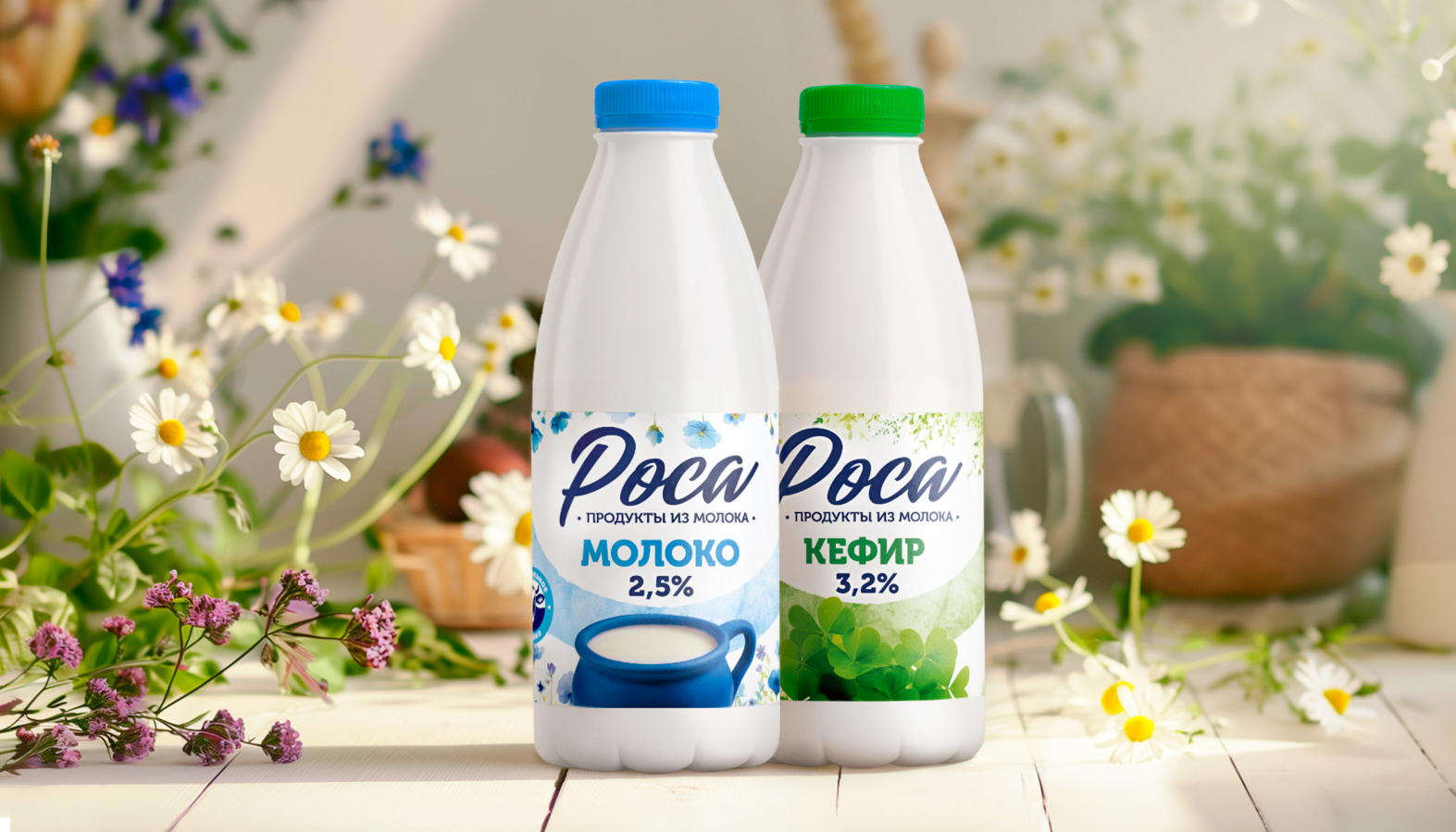 Новый дизайн вдохновлен названием «Роса», вызывающим ассоциации с утренним временем на природе. Упаковка теперь выполнена в чистом, нежном стиле с акварельными иллюстрациями, отражающими атмосферу свежести и природной красоты. Каждому продукту соответствует уникальный букет полевых цветов: клевер на упаковке кефира и голубые незабудки на молоке, что упрощает навигацию по ассортименту и подчеркивает индивидуальность каждого вкуса. Подробнее на Sostav.