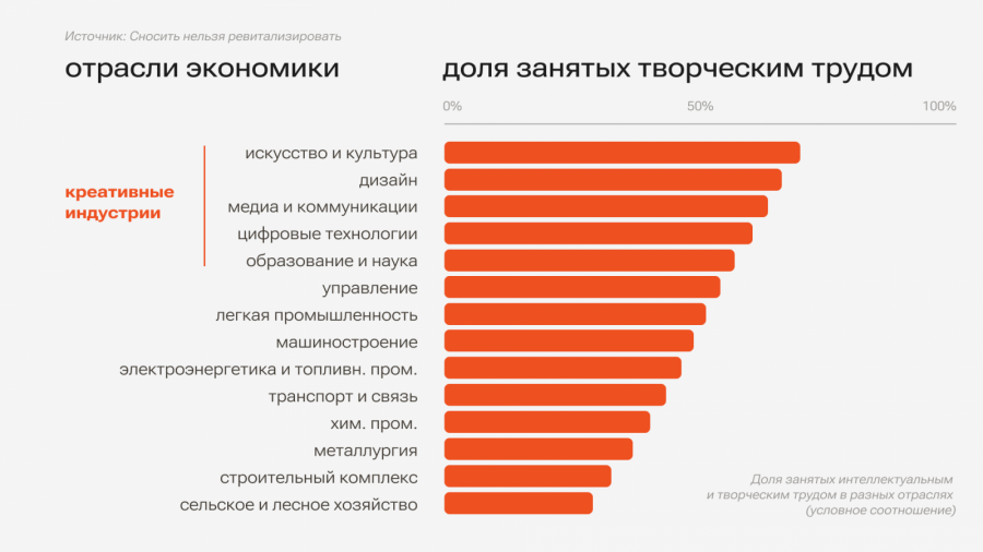 Теперь по существу. Государство всерьёз занялось развитием и поддержкой креативных индустрий. Могло бы, конечно, лет на 20 раньше озаботиться, но, вероятно, руки не доходили. Зато сейчас все виды деятельности, связанные с творческим процессом, находятся в фокусе внимания. Креативные профессии, как выяснилось, способны не только генерировать валовый доход и создавать рабочие места, но также консолидировать общество, крепить репутацию регионов и страны в целом. А ещё национальные и коммерческие бренды, создаваемые как раз при помощи креативных специалистов, способствуют капитализации экономики и обеспечивают устойчивое развитие.