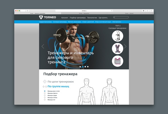 Torneo — это тренажеры, инвентарь и аксессуары для домашнего фитнеса, от теннисных ракеток и кистевых эспандеров и до беговых дорожек и атлетических комплексов. Бренд существует с 2003 года, его логотип с тех пор не менялся, хотя ассортимент расширился многократно.