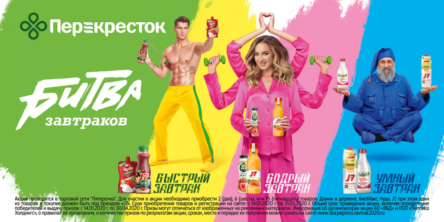 Новая рекламная кампания федеральной торговой сети «Перекресток» и PepsiCo продвигает завтраки, как и кампания для «Пятерочки», выпущенная ранее. В ролике в стиле «ретровейв» приняли участие уже знакомые герои — Ольга Бузова, Анатолий Вассерман и Алексей Воробьев.