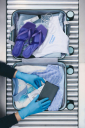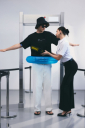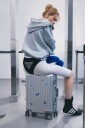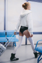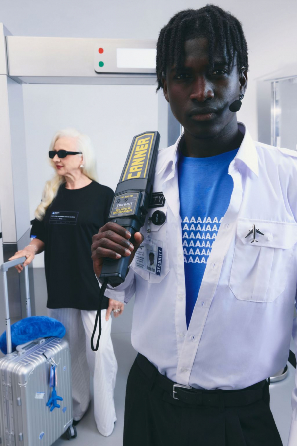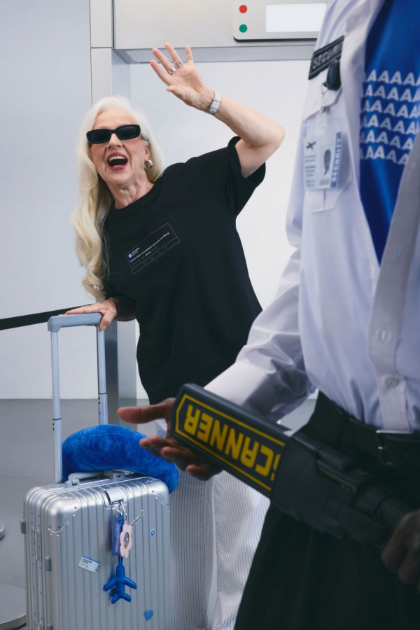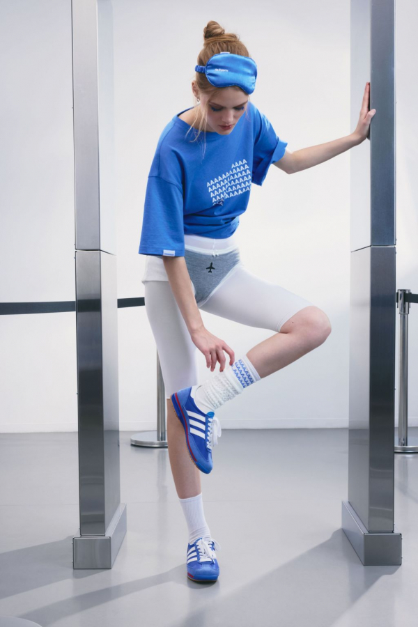 В лукбуке мы объединили любовь «Авиасейлс» к синему цвету и фешен-экспертизу Befree. Съемка вдохновлена архивными фотографиями Vogue 2017 года со сценами досмотра в аэропорту. Вместе с сет-дизайнерами мы создали две площадки: зал ожидания и стойку проверки багажа. Взрослая модель в кадре — одновременно привет роликам «Авиасейлс» и воплощение идей Befree о многообразии человеческих тел, лиц и возрастов.