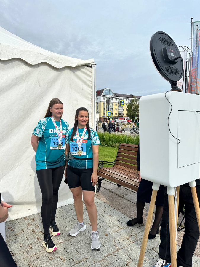 У бегунов-любителей обычно нет возможности сорвать финишную ленту, ведь она достается одному только победителю. Но в СИБУРе каждый сотрудник — победитель на своем проекте. Поэтому мы установили фотобудку, которая с помощью ИИ генерировала фотографии участников с финишной лентой.