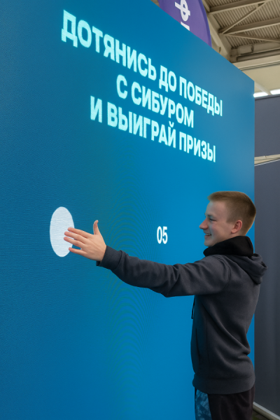 Нам было важно поддержать взволнованных марафонцев накануне старта. На экспо, куда приходят забрать свой стартовый номер, мы разместили экран с игрой «Дотянись до победы». Участникам нужно было максимально растянуть руки в разные стороны, чтобы выиграть полезный приз — спортивное питание или МФР-ролик.