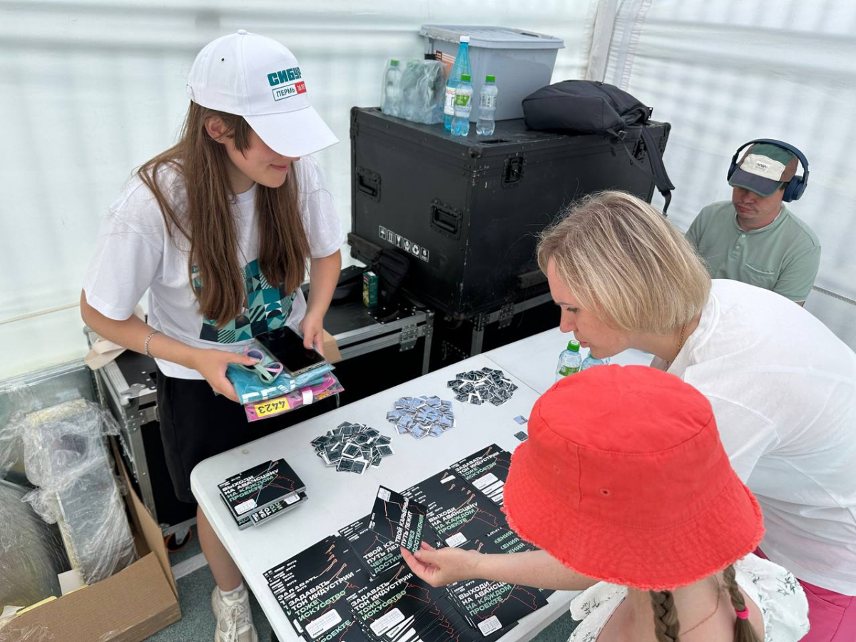 В обоих городах сбор участников до и после старта проходит в стартовом городке. Там мы провели игру «Хватайся за возможности». На экране светились атомы, из которых постепенно складывалась молекула полимера, а участникам нужно было удержаться за них, не отрывая рук от поверхности.