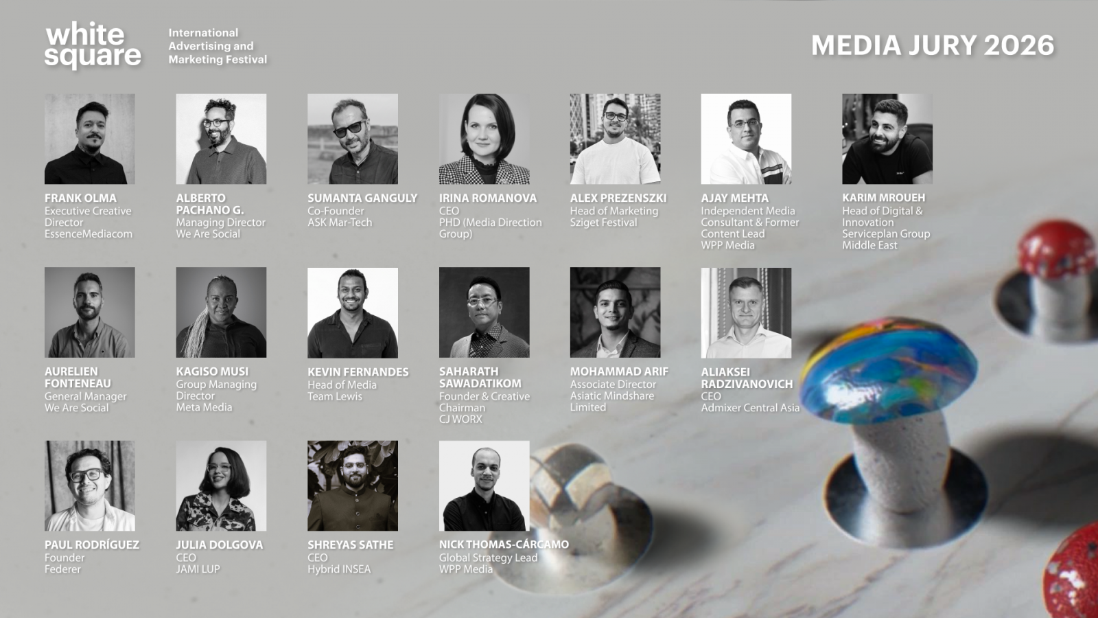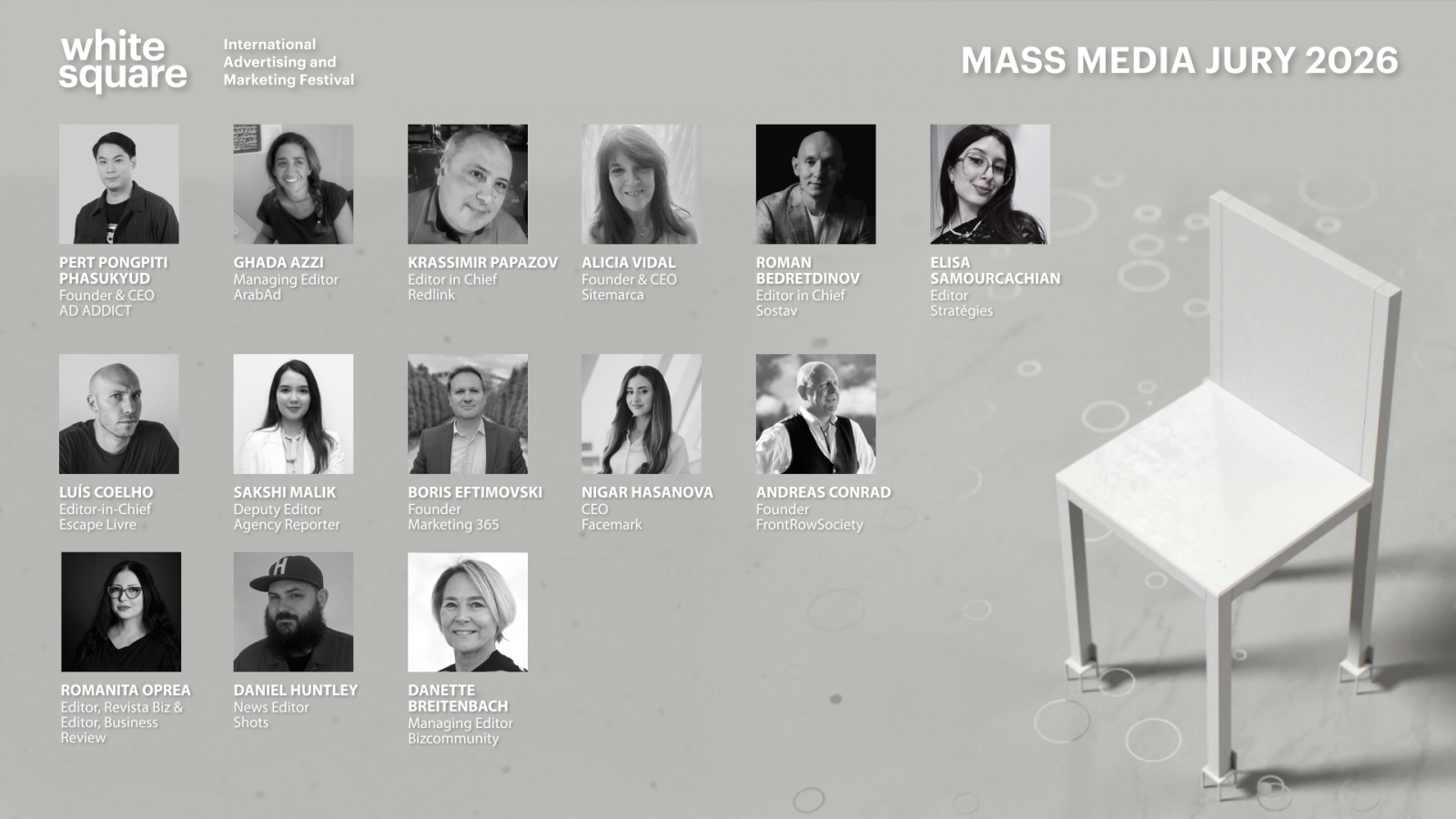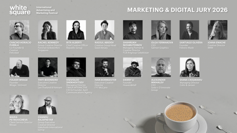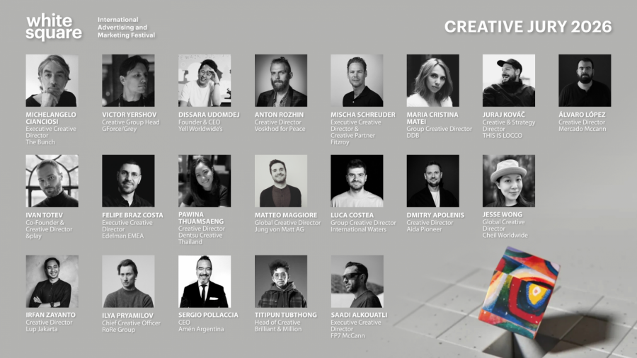 Международный фестиваль маркетинга и рекламы «Белый Квадрат» / White Square 2026 объявил жюри, объединившее ведущих представителей мировой креативной индустрии из более 45-ти стран. В составы вошли персоны, обладающие многочисленными наградами и опытом судейства ведущих фестивалей мира.
