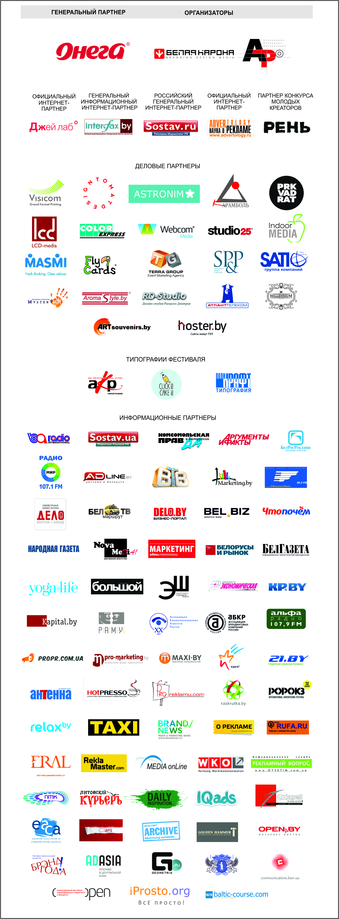 Есть еще 10 дней, чтобы стать участником деловой и образовательной программы Фестиваля. В этом году на Фестивале пройдет более 50-ти мастер-классов от самых ярких представителей рекламной индустрии стран СНГ и Европы. В течение трех дней аккредитованные участники Фестиваля смогут получить системные представления о трендах 2013 года в различных отраслях маркетинга, брендинга и креатива.