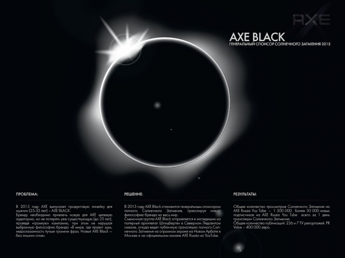 Серебро. Агентство: RCG (Россия). Проект: Axe Black Затмение.