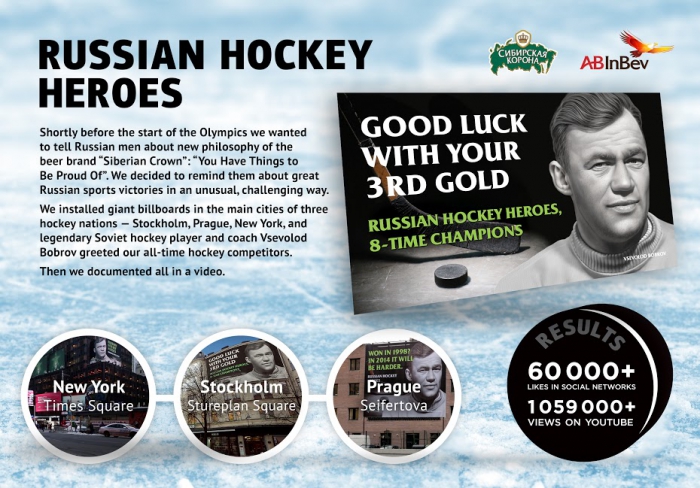 Бронза. Агентство: MOST Creative Club (Россия). Проект: Русские герои хоккея, Сибирская корона