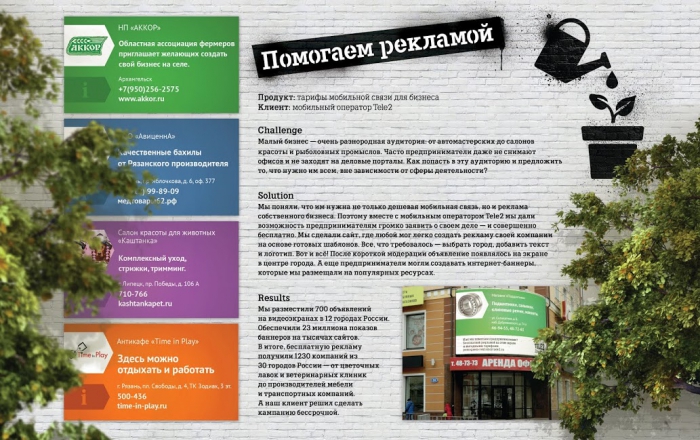 Бронза. Агентство: MOST Creative Club (Россия). Проект: Помогаем рекламой, Tele2