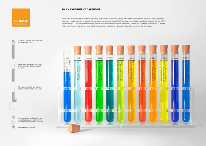В этом году Гран-При "Белого Квадрата" ушло на Украину, к агентству Saatchi & Saatchi за работу "Daily Experiment" для международного химического консорциума BASF. Проект представляет собой необычный календарь, состоящий из заполненных разноцветными жидкостями колб.