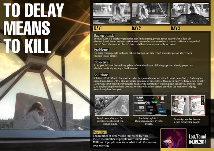 Золото. Агентство: Twiga (Россия). Проект: Медлить - значит хоронить, Лиза Алерт